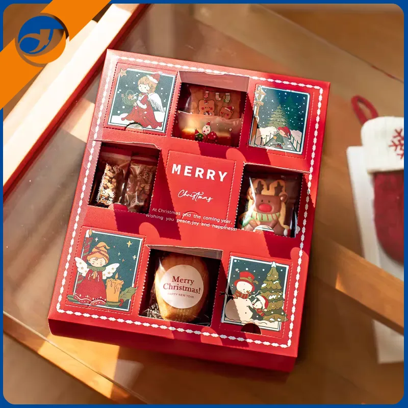 Caja de papel de nueve cuadrículas, caja de regalo ciega, tema navideño |